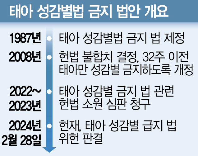 지난 달 28일 헌법재판소는 32주 전 태아 성별을 고지하는 것을 금지하는 의료법 20조 2항에 대해 재판관 6대3 의견으로 위헌 결정을 내렸다. 헌재는 지난 2008년 임신 기간 내내 성별 고지를 금지한 의료법 조항이 헌법에 맞지 않는다며 헌법불합치 결정을 내렸고, 이듬해 임신 32주가 지나면 성별을 고지할 수 있도록 대체 법안이 입법됐다. 하지만 입법 이후에도 해당 조항은 사실상 사문화됐다.